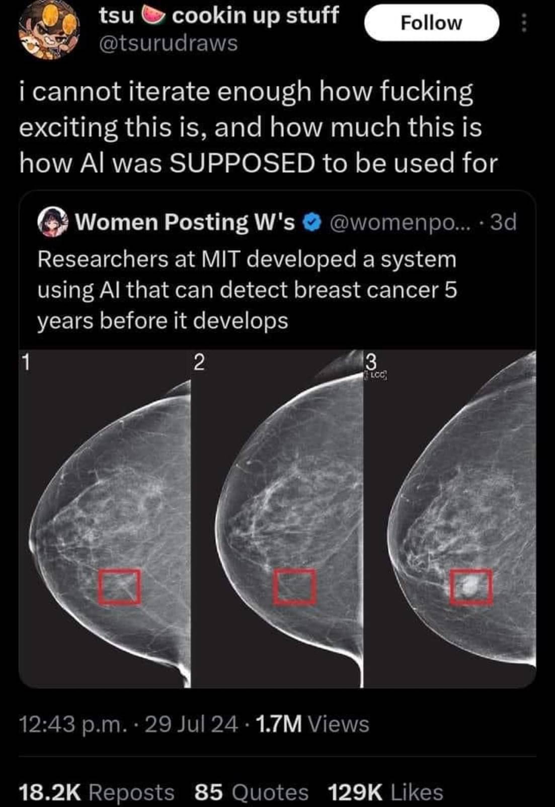 Unfortunately AI models like this one often never make it to the clinic. The model could be impressive enough to identify 100% of cases that will develop breast cancer. However if it has a false positive rate of say 5% it’s use may actually create more harm than it intends to prevent.