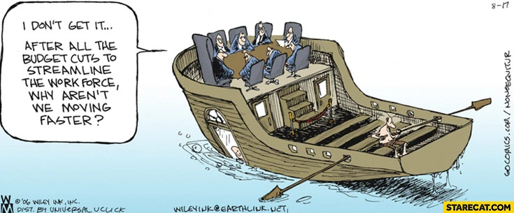 Eh, sometimes the corporate solution is to add more horses, just not horses that are immediately (or sometimes ever) useful. Horses that have maybe never pulled a cart before or have only ever pulled carts solo. Horses that need a month of training to be able to contribute meaningfully, often through no fault of their own, but are told that this cart needs to be pulled out of the mud in two weeks. And then when the original horses tell the cart driver that it’s going to take a month to get everyone up to speed, they completely miss the point and ask how many more horses we need.