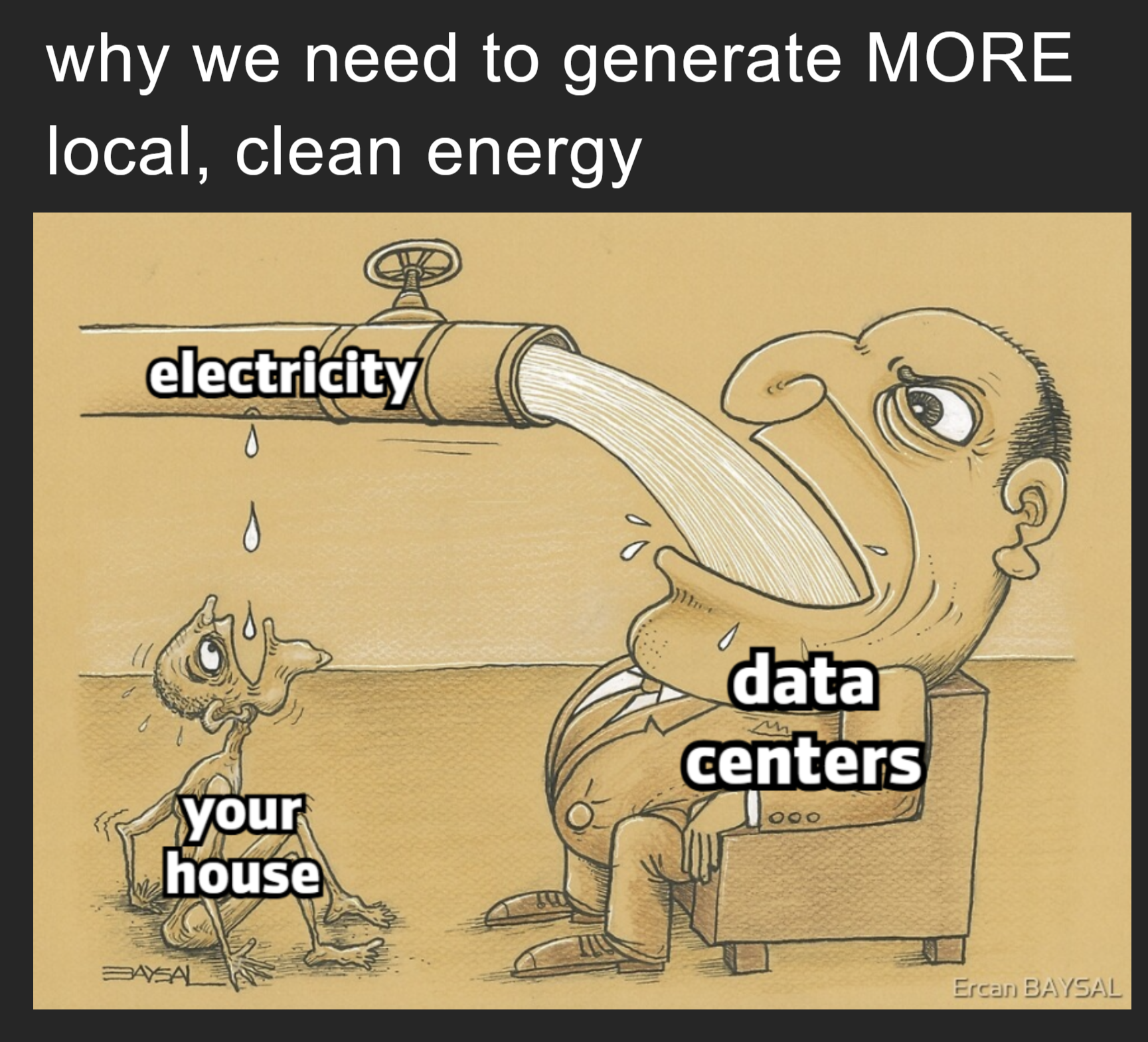 Despite my city having hydroelectric power as one of the power supplies, data centers make me horrified of what damage they’d do if they started popping up in my hometown. Especially with all the water they waste.