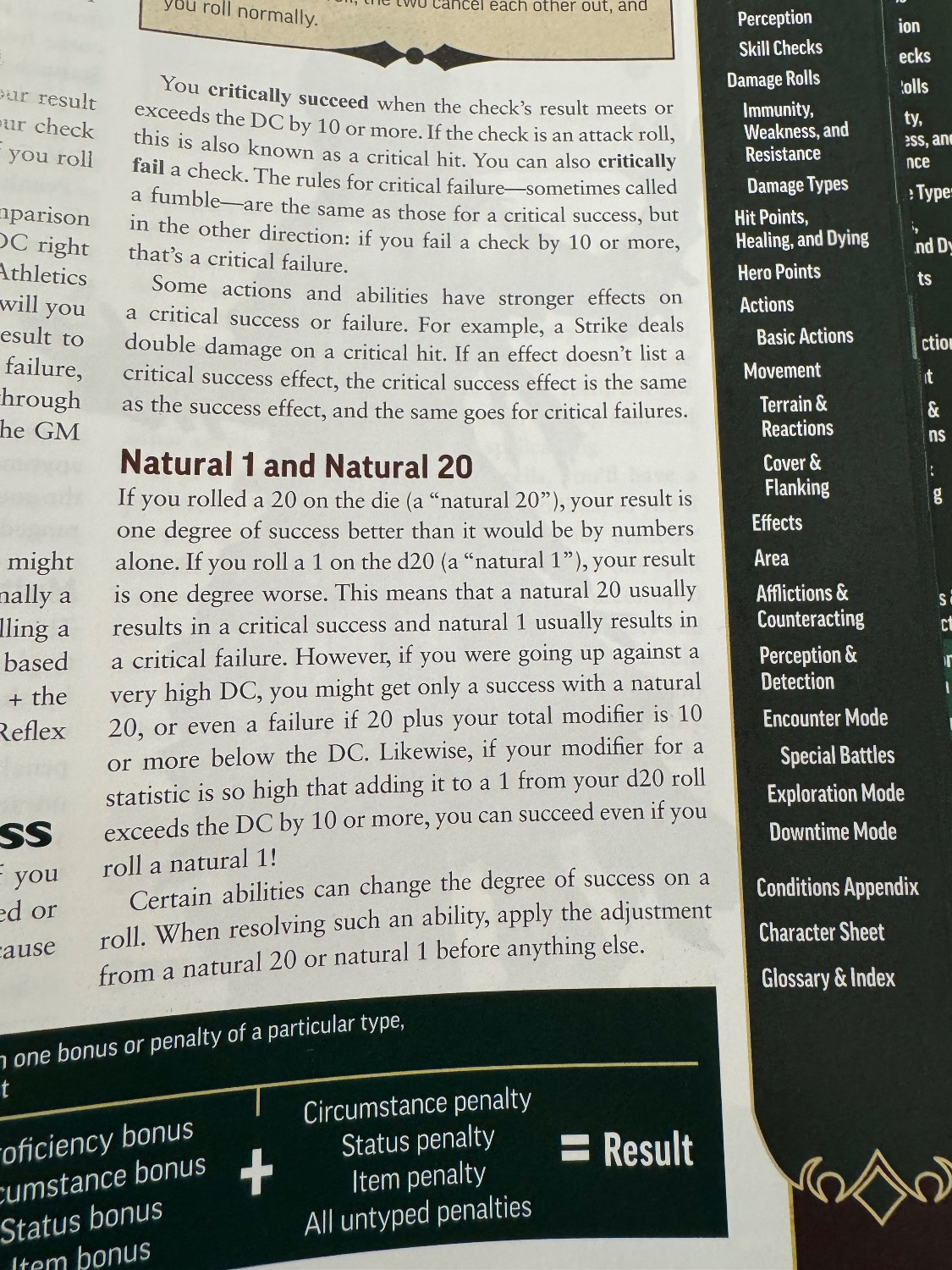 Well you’re wrong. Nat 20 or nat 19 actually means you get to take another main action on the same turn, which can potentially also crit.