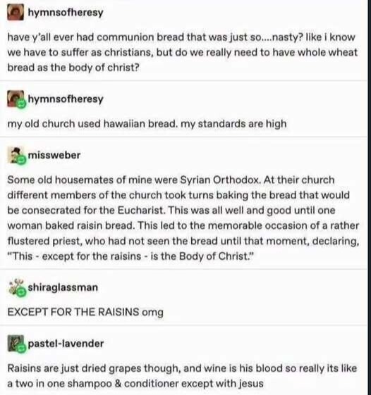 I was under the impression that all communion bread/wafers/crackers/whatever were at best, bland and perhaps a little stale. But I’ve also never taken communion so 🤷♂️