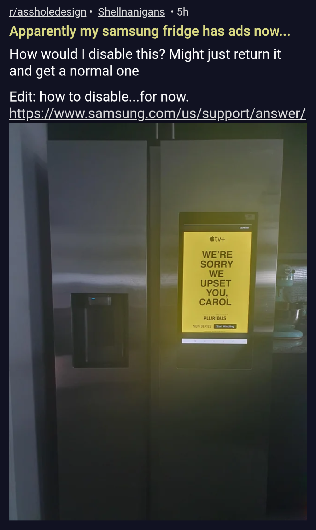 ByteOnBikes@discuss.online to A Boring Dystopia@lemmy.world · 6 days agoRefrigerator ads are finally here!imagemessage-square312linkfedilinkarrow-up1592arrow-down15