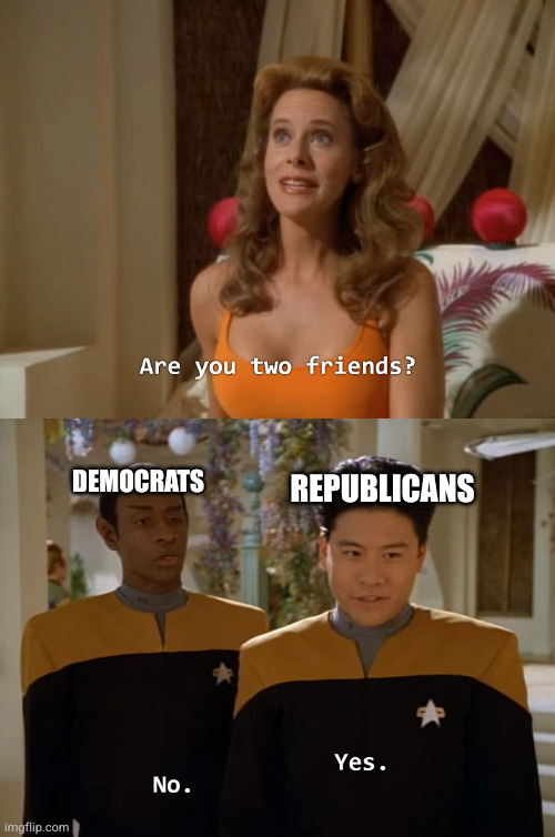Pointed that out in my comment too. Republicans probably think theyre friends with Democrats who are “one of the good ones.” Dems are smart enough to know Republicans are all bad