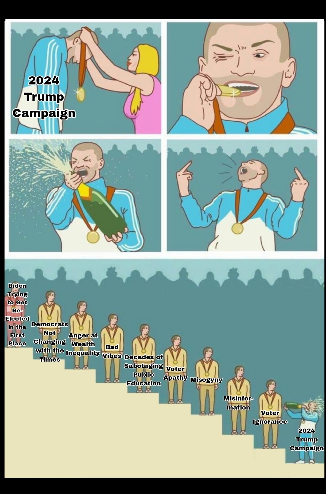 Trump is a brilliant politicaian. I hate the ground the man walks on, but don’t discount his political skills. He has stronger political instincts than almost every politician alive in America today. He can be evil while also being a great politician. You see his politics and conclude he doesn’t know what he’s doing. But you are simply not his target audience.