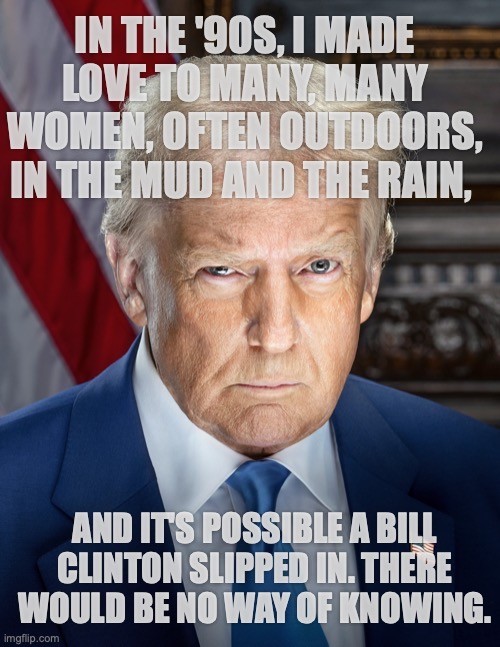 They can’t say, “It wasn’t Bill Clinton!” because that would mean it was some other dude, lol.
