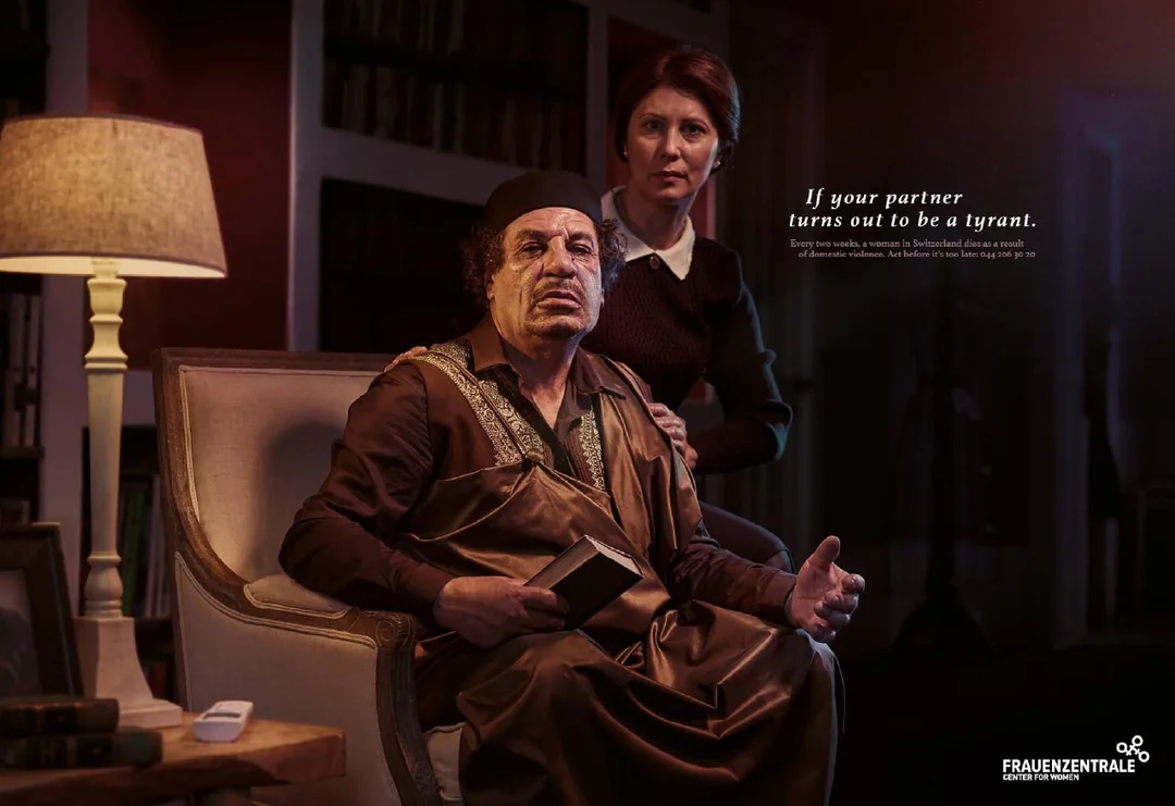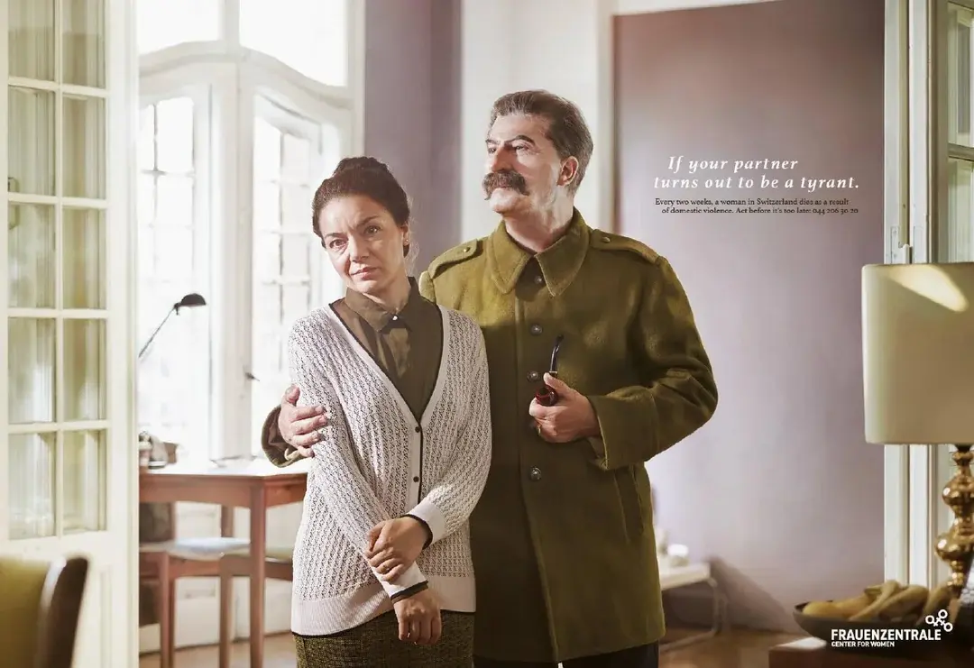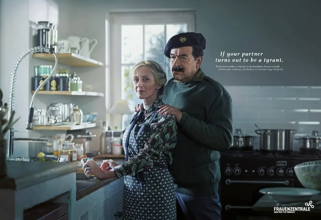Text: “If your partner turns out to be a tyrant. Every two weeks a woman in Switzerland dies as a result of domestic violence. Act now before it’s too late.”