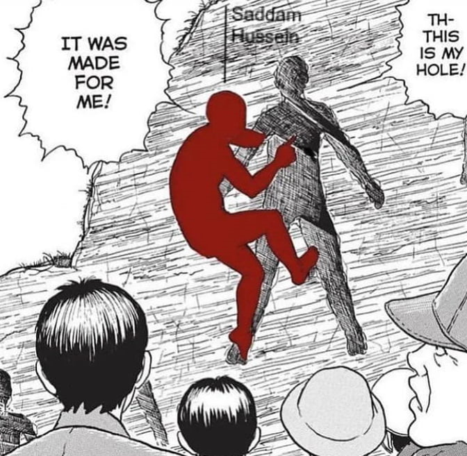 And here I was thinking : “Hey, clever me just noticed it looked like the saddam hussein meme. I’ll go to the comment section make that joke. It will be hilarious.”