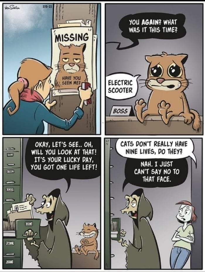 And when I mentioned his (mandatory) insurance, he went “cheerio” and sped off leaving me having to do bandages for two weeks while my knees mended.Anyway, good thing I have 3 lives.