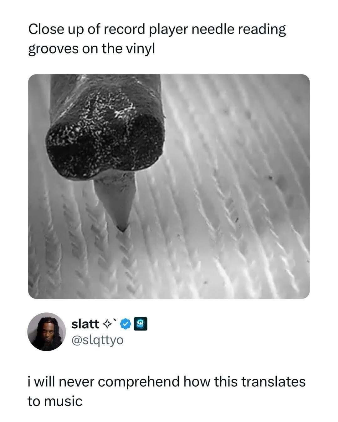 minus-squareHikermick@lemmy.worldlinkfedilinkEnglisharrow-up1arrow-down2·11 days agoA microscope? That must be a tiny record player. The needle arm looks like it’s made of clay