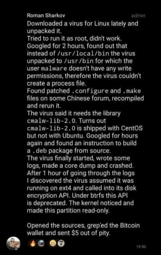 anyway, for those interested: here are two videos of malware attacks against lunux in rather different fashions: