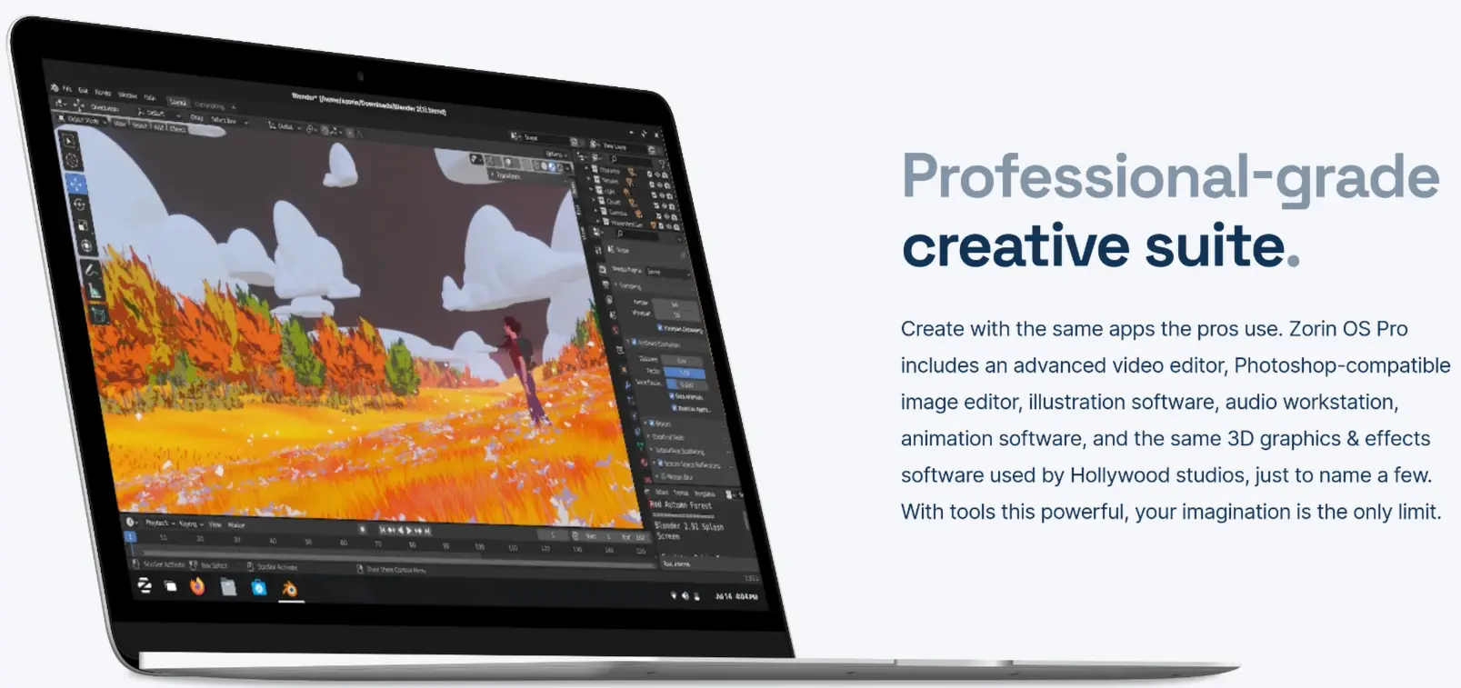 They also want $48 for their Pro version which comes with a “professional-grade creative suite” consisting of… GIMP, Blender, Inkscape, Kdenlive, and… Audacity (?), going off the screenshots they show: