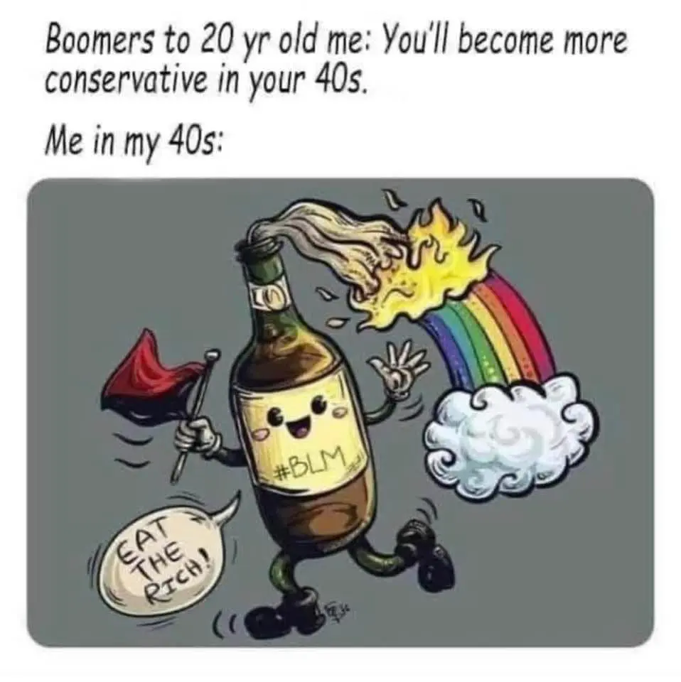 Always wondered why people “traditionally” moved right as they aged, since it has been the opposite of me. I guess many people take something different out of their life experiences, I don’t know. Interestingly as well, I think my parents (born in the early 50s) may have changed similar to me, but that could just be a difference in my own perception. I think they have always been somewhat left leaning despite being fairly religious, but probably 10 or more years ago they stopped attending church. I don’t think they claim much to any religion these days, despite my father having been a preacher for like 25 years.