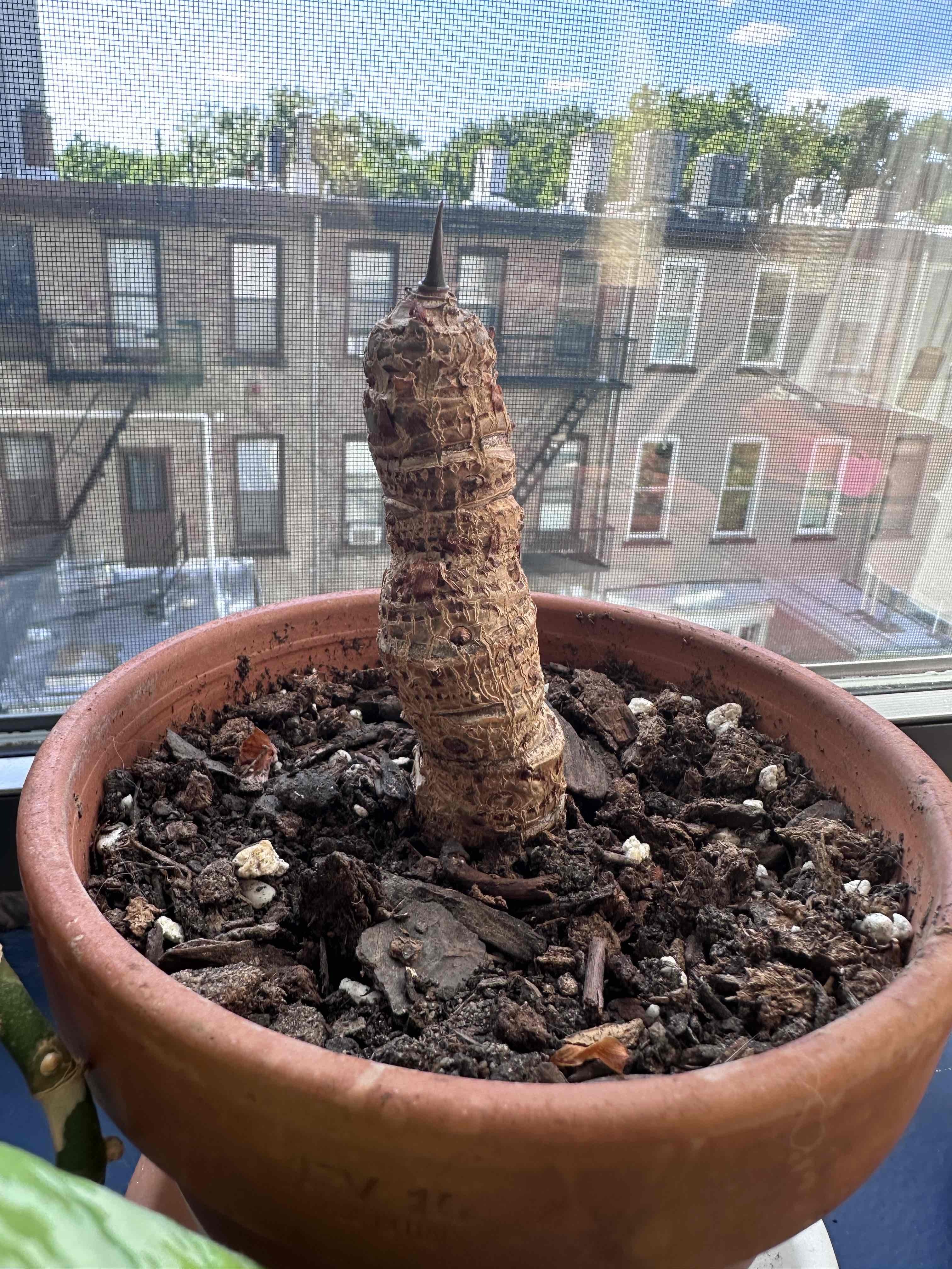 I’m so glad you asked! That little nub did eventually grow its last leaf and eventually fell off. So I was back to full nub. So I decided dig her up because I was really curious to see what the heck was going on with the root structure.