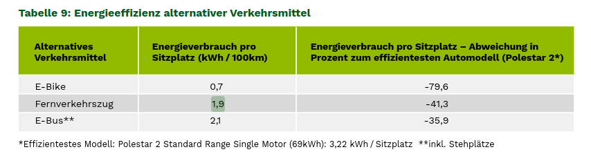 Es ist einfach Wahnsinn, wie viel weniger Energie gerade Züge oder eBikes verbrauchen. Und wenn man dann noch den Co2-Ausstoß betrachtet, dann ist das bei ~50% erneuerbaren im Netz noch viel härter.