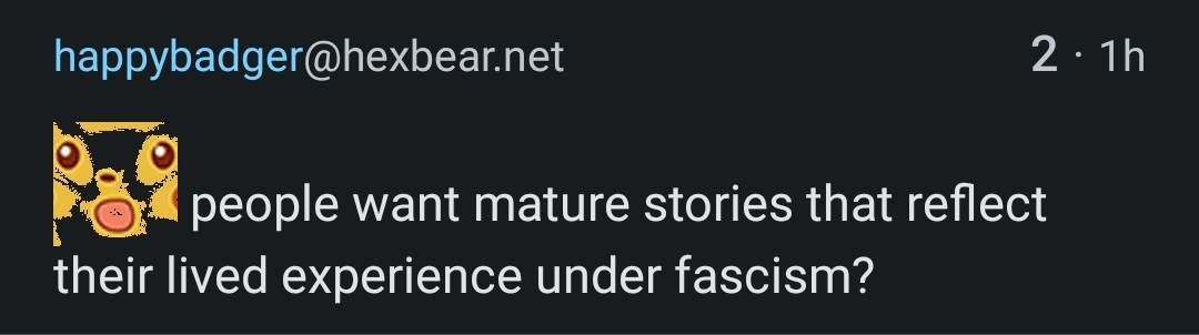 Fwiw personally I thought Rogue One was extremely overrated. I didn’t particularly care for any of the characters, and I thought some (especially the bizarre “I am one with the Force, the Force is with me” guy) were actively grating. IMO for a lot of the broader public, Rogue One’s popular reception rests entirely on the awesome final sequence with Vader, and to a lesser extent on some of the great action leading up to that.