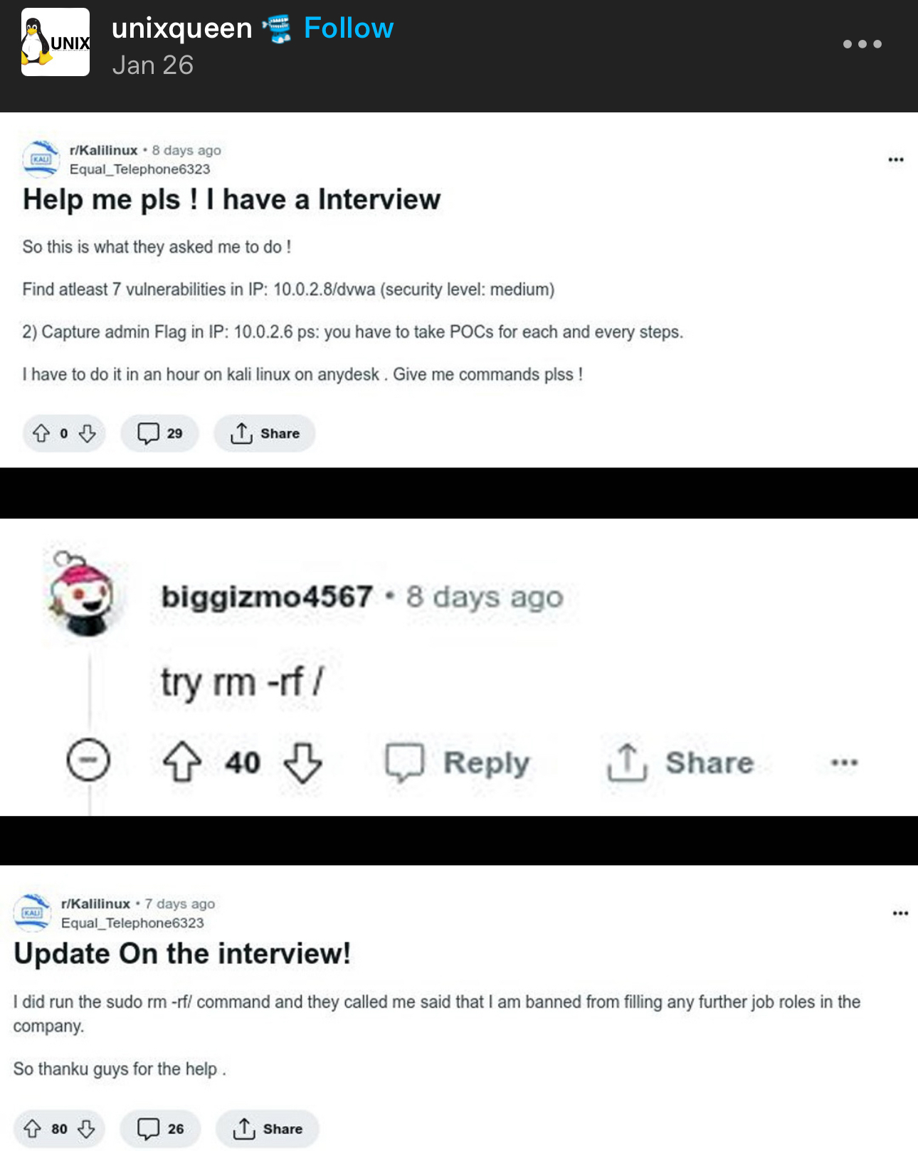 Did they execute the command on localhost or the remote? Because hey if they had privileges to root-nuke the target that’s gotta count for something right? Lmao