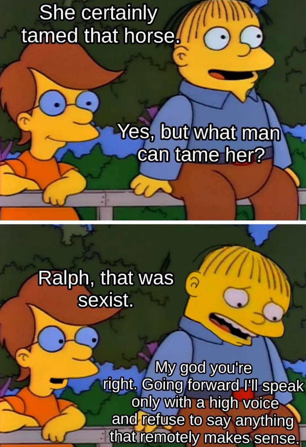 arrow-up110arrow-down1imageRalph's brain brokeThe Picard Maneuver@lemmy.world to simpsonsshitposting@sh.itjust.worksEnglish · 6 months agomessage-square5linkfedilink