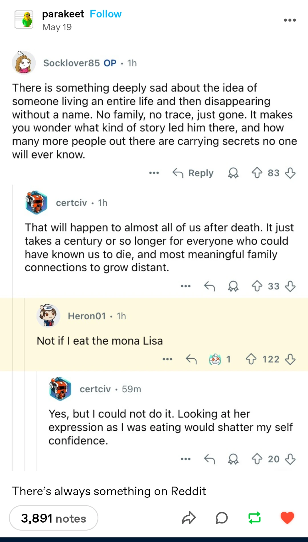 That reply is pure cope. I mean, sure, eventually everything will “crumble down”, entropy is a thing after all, but that doesn’t mean it’s better to have a sad and lonely life.