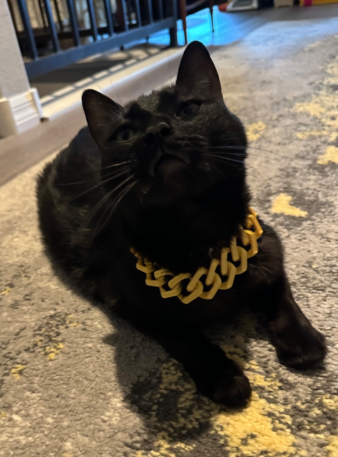 Had to make a gold one for Bandit lol. And no, neither Bandit or Noki are wearing these full time. They really don’t seem to mind having them on but I’m sure they don’t love it. Basically just snap some cute pics and then take em off.