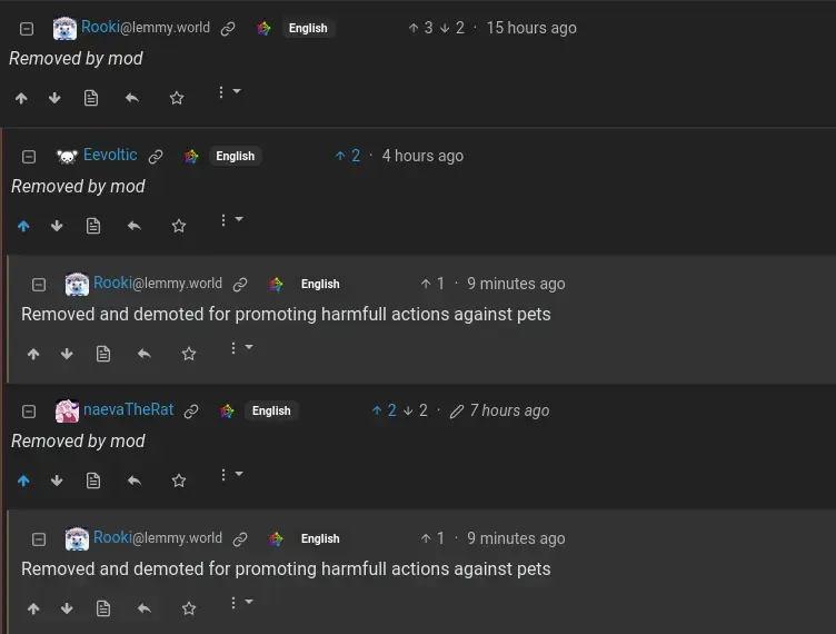 A carnist lemmy world instance admin has stepped in and meatsplained to the mods while restoring comments that violated the community’s rules. They deleted comments that they did not agree with, citing ‘misinformation’, and threatened to demod the mods if those comments were removed again. The comments were deleted and the admin was banned from the community as per violating the rules of the community, that was until they unbanned themselves (admin abuse) and unmodded two of the moderators because of “promoting harmfull actions against pets”.
