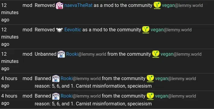 As far as it stands, if the lemmy world community wasn’t already not a safe vegan place for you (it really wasn’t) it most certainly isn’t now as carnists (lemmy world instance admin) currently mod it.