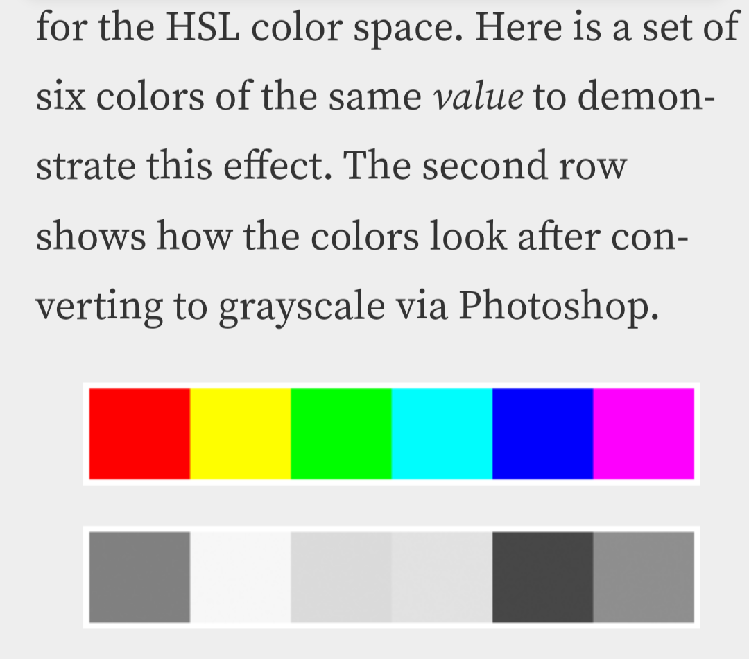 Of course in reality it get a bit more complex when we perceive colors as having different brightness too: